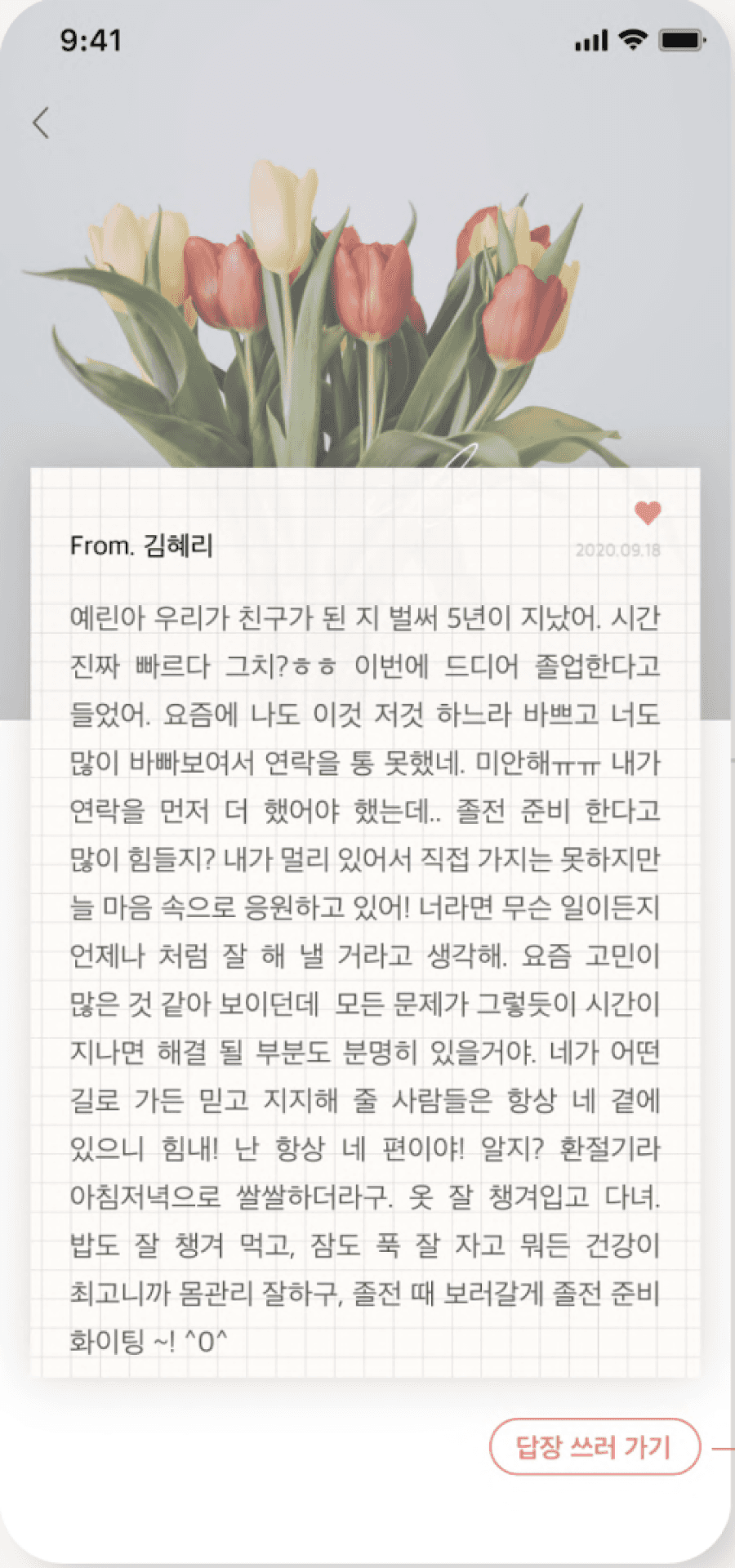A mobile service that recommends flowers based on the emotional context of a written letter, enabling meaningful gifting while supporting local flower farms during COVID-19.